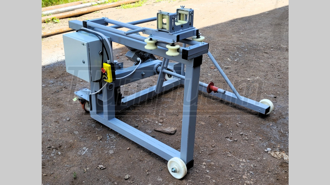 Подъём и опускание барабана производится с помощью гидравлического домкрата, интегрированного в раму отмоточного станка.
