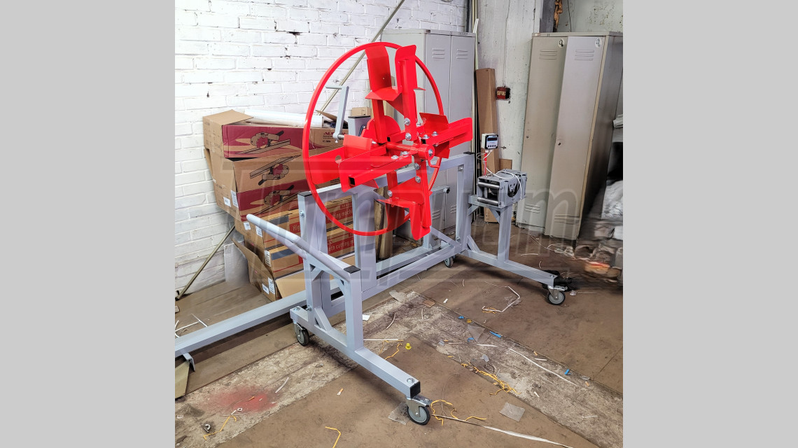 Благодаря наличию колёсных опор с тормозными механизмами, станок легко перемещать по территории склада или к месту проведения отмотки.