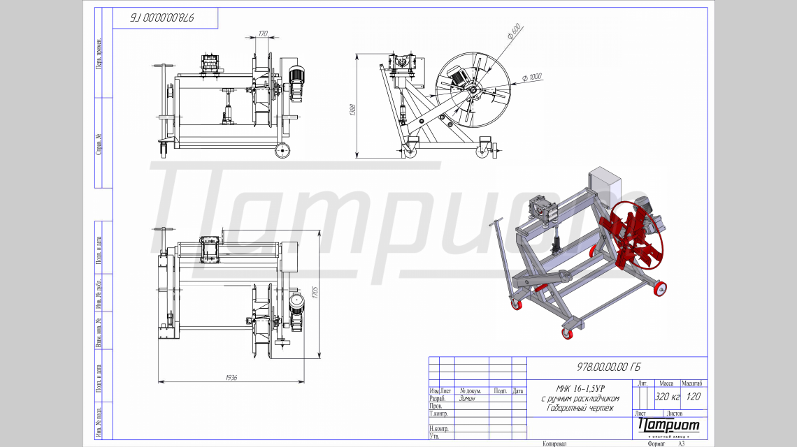 Отмоточный станок МНК 16-1, 5УР Патриот - универсальный перемоточный станок среднего класса, предназначенный для проведения мерных отмоток кабеля, провода, стального каната на кабельный барабан или в бухту.