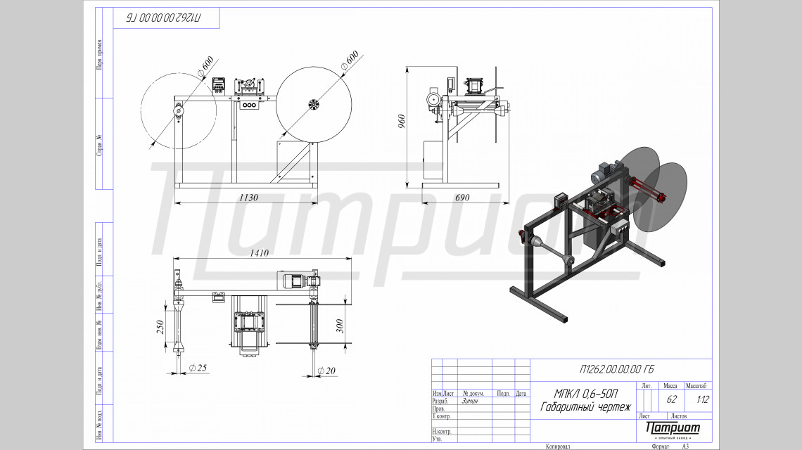 Комплект поставки отмоточного станка МПКЛ 0,6-50П Патриот: