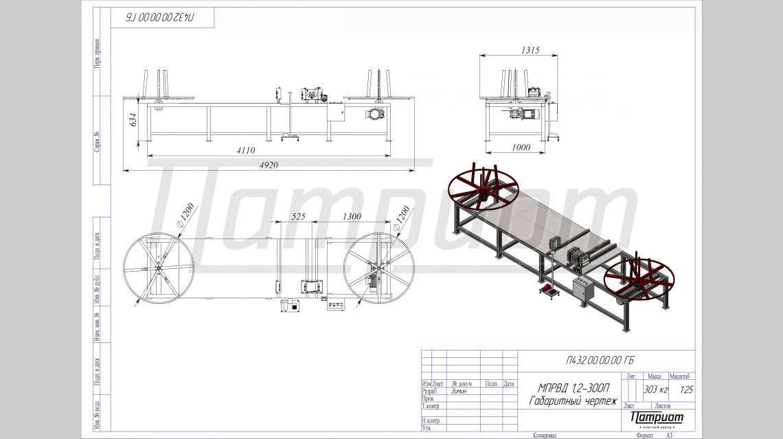 Комплект поставки отмоточного станка МПРВД 1,2-300П Патриот: