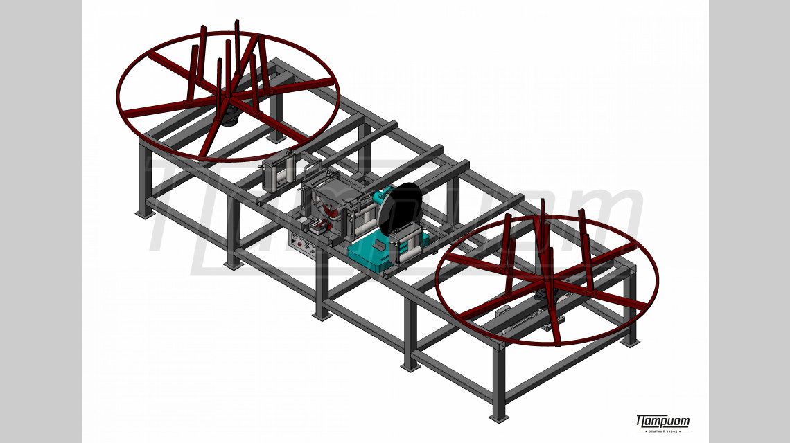 Станок состоит из сварной рамы, подающего технологического барабана, приёмного технологического барабана с электроприводом и управлением на базе преобразователя частоты и измерителя длины МИД 100 с двумя дополнительными направляющими рамками.