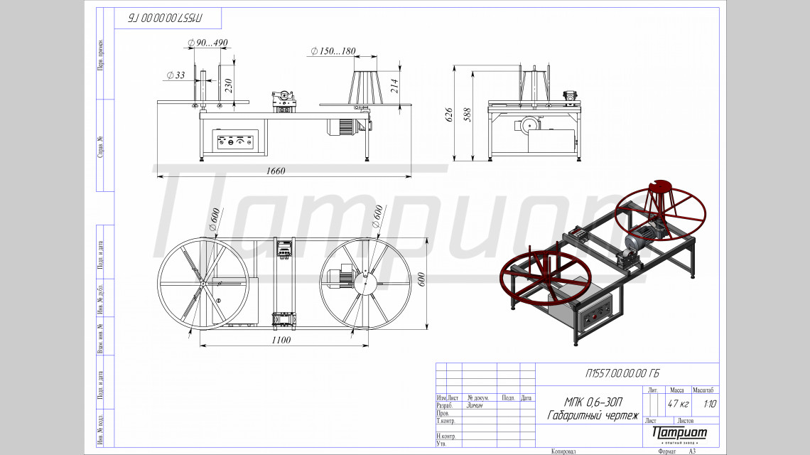 Станок отмотки кабеля и провода с электроприводом МПК 0,6-30П Патриот