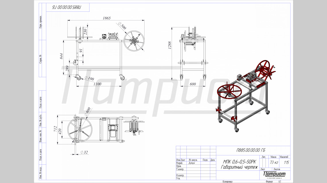 Комплект поставки отмоточного станка МПК 0,6-0,5-50РК Патриот:
