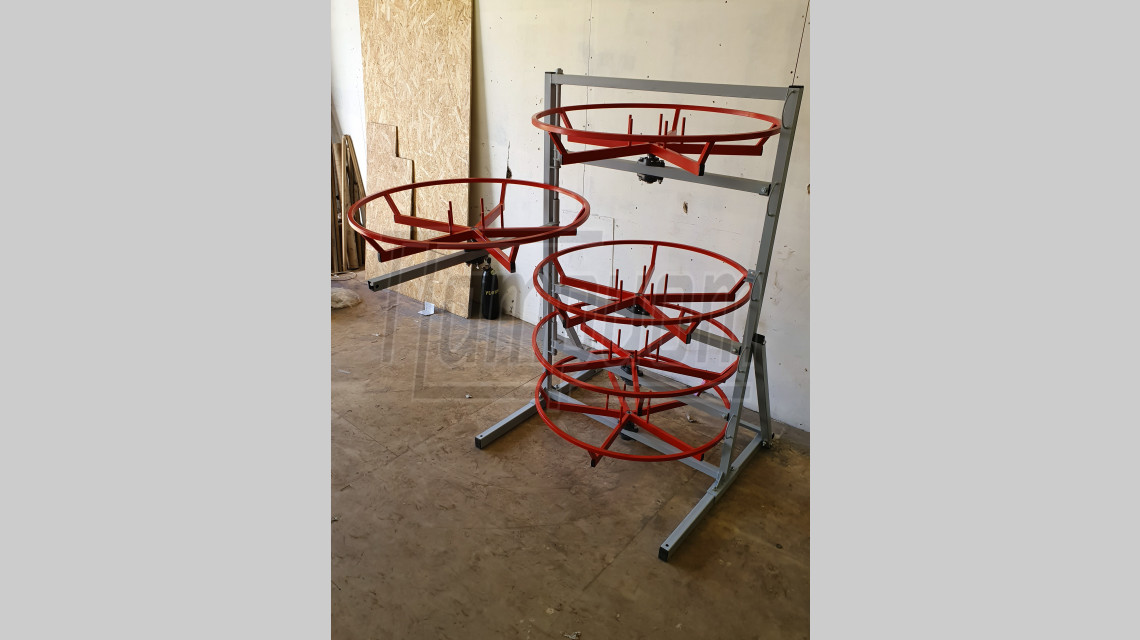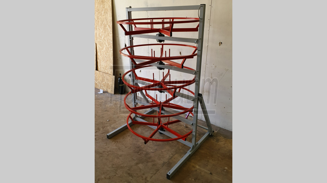 Стеллаж (стенд) для рукавов высокого давления СБРВД 5-1Р Патриот - сборно-разборный стеллаж вертикального типа, предназначенный для хранения и размотки (отмотки) до пяти бухт РВД.