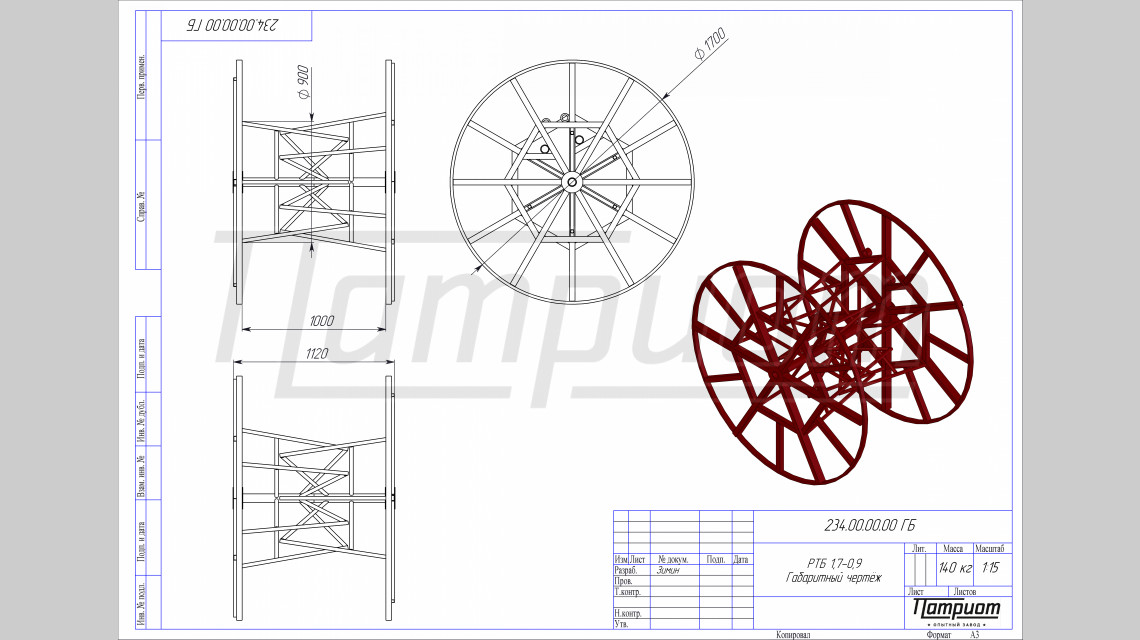 Технологический кабельный барабан разъёмный РТБ 1,7-0,9